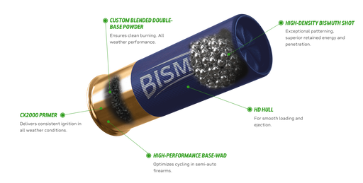 KENT CARTRIDGE - BISMUTH WATERFOWL, 12GA, 3", 1-3/8oz, 1450FPS High Performance Non-Toxic 24% more dense than steel Superior wind resistance Clea...