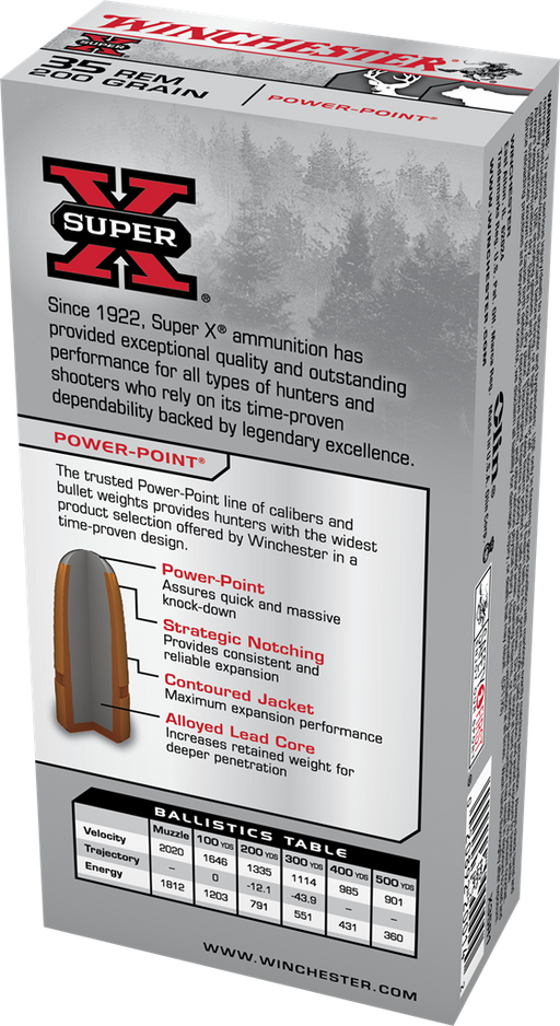 Super-X Rifle Ammo 35 REM, Power-Point, 200 grains, 2020 fps, 20 per box.